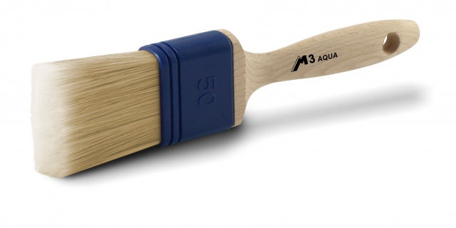 12. Stärke, vollsynthetische Mischung M3, blaue Polyamid Kunststoff-Fassung, vollverklebt, Buchenholzstiel