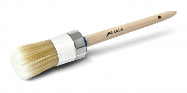 vollsynthetische Mischung M3, einfacher weißer Fadenvorband, Nickelring, blauer Deckel, Buchenholzstiel
